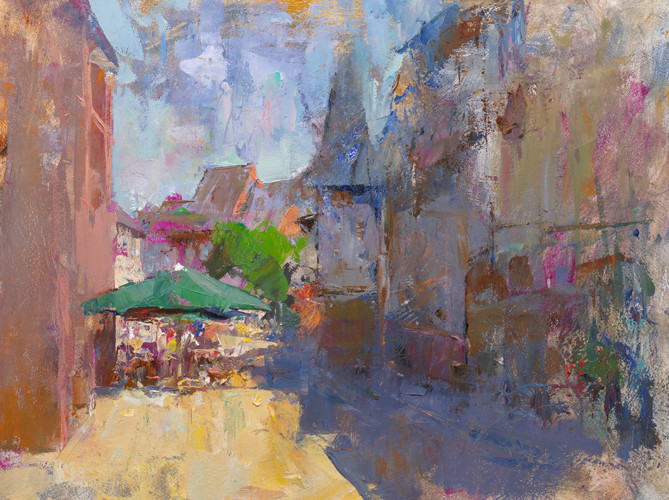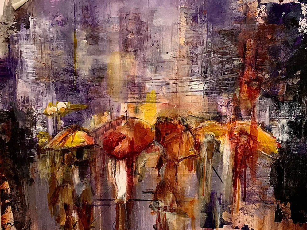 Die meist großformatigen Acryl- und Tuschebilder erzählen Geschichten vom urbanen Leben aber auch von privaten Momenten. Ergänzt werden diese Eindrücke durch einige abstrakte Gemälde mit floralem Charakter.